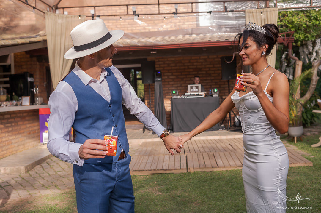 Após a cerimônia, a recepção na Chácara Luiza se transformou no cenário perfeito para celebrar. Entre risadas, abraços apertados e conversas cheias de afeto, o amor se espalhou de forma leve e verdadeira. Um encontro marcado por conexão, simplicidade e uma energia contagiante que só quem vive o amor com intenção conhece.